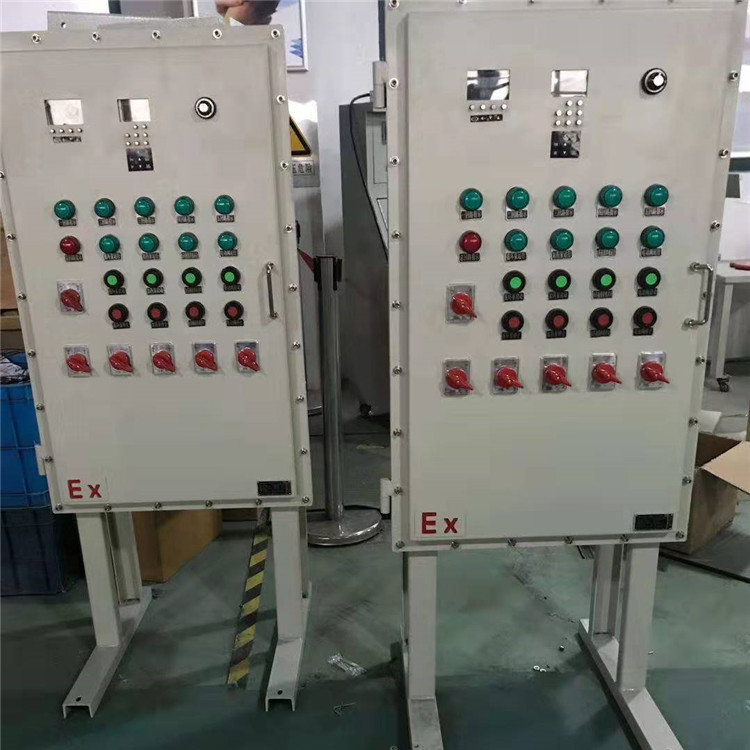 防爆變頻器是將變頻器裝在防爆箱里面,新定制的隔爆型防爆箱內(nèi)裝變頻器,斷路器,交流接觸器,熱繼電器,時(shí)間繼電器,中間繼電器,電動(dòng)機(jī)保護(hù)器等元件,防爆殼體表面加裝防爆按鈕,防爆指示燈,防爆轉(zhuǎn)換開關(guān),防爆電位器,防爆急停按鈕,防爆按鍵等,內(nèi)部接線端子排,表面鋼化玻璃顯示窗口,優(yōu)質(zhì)緊固件以及合頁。